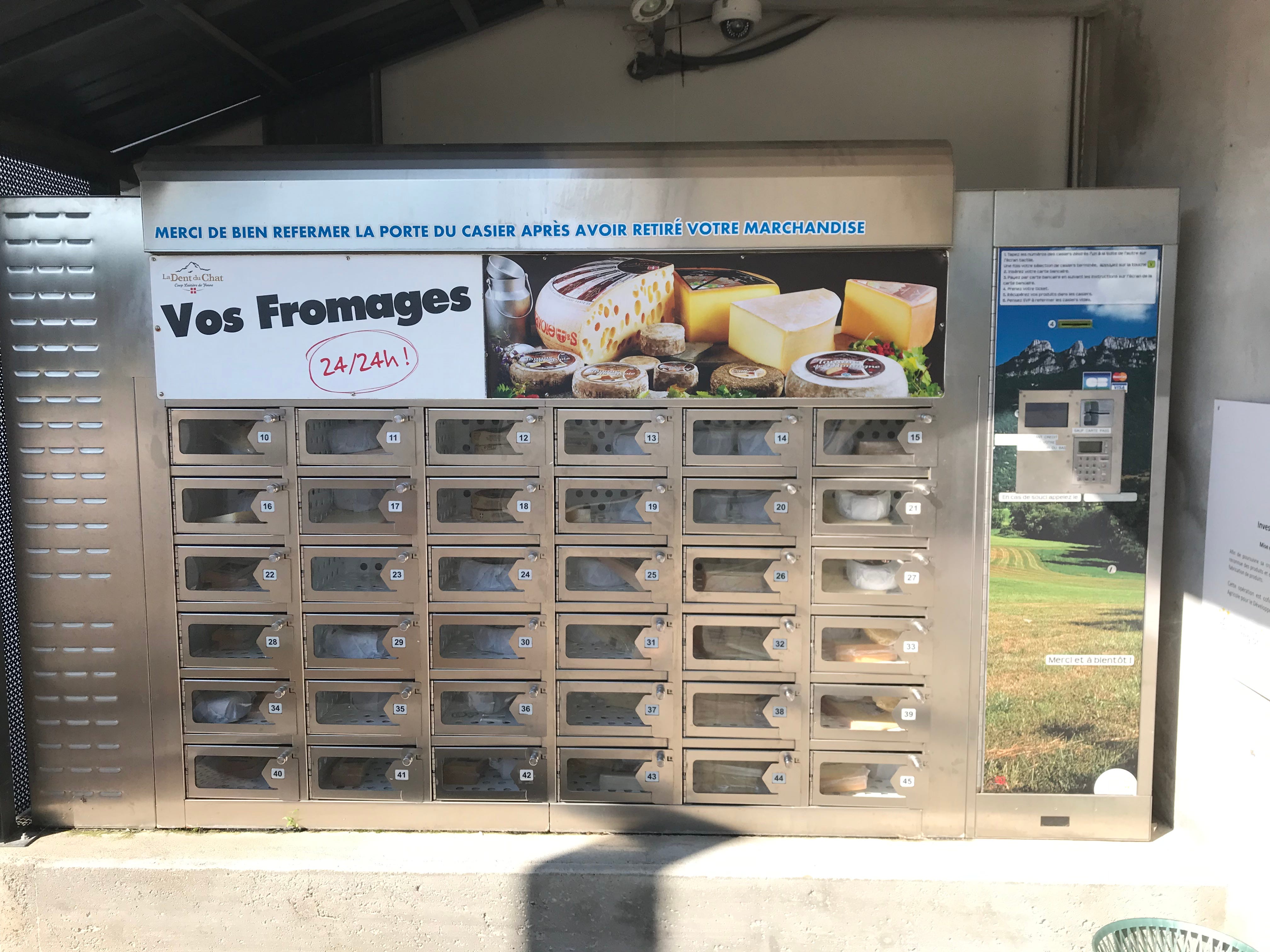 A cheese vending machine! How French! Reminds me of the vending machines in Japan that dispense all sorts of things that would never occur to an American. Like umbrellas and sex toys...
